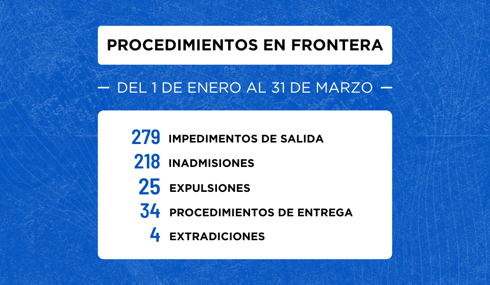 La Dirección Nacional de Migraciones efectuó un total de 560 procedimientos de seguridad migratoria en los pasos fronterizos y aeroportuarios del país durante los tres primeros meses del año 2025, en conformidad con lo establecido en la Ley N° 6984/22.