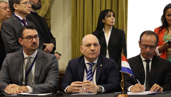 El director nacional de Migraciones, Jorge Kronawetter, el viceministro de Seguridad del Ministerio del Interior, Oscar Pereira y el viceministro de Relaciones Exteriores, Víctor Verdún, representaron al Paraguay en la I Reunión de Ministros y Altas Autoridades de Seguridad Pública y Crimen Organizado del Consenso de Brasilia, desarrollada en Santiago de Chile, el 18 de abril.