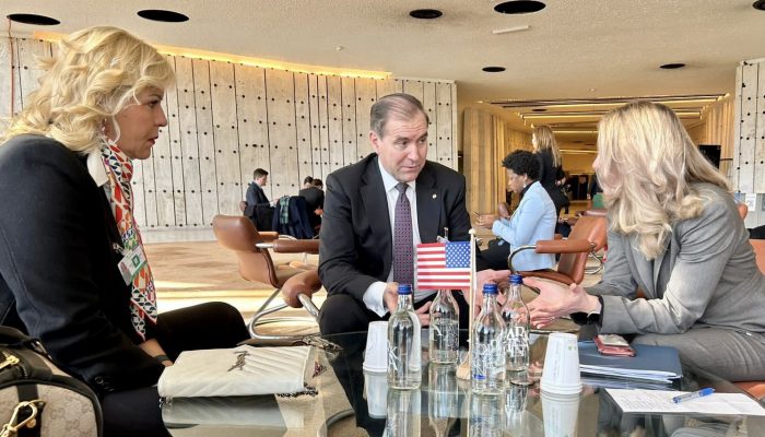 Por otra parte, el Canciller Julio Arriola y la Directora Nacional de Migraciones, Ángeles Arriola, también conversaron con la candidata de EE.UU. a la Dirección General de la Organización Internacional para las Migraciones, Amy Pope, quien compartió su visión y plan de trabajo para el citado órgano.