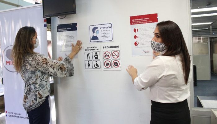 La socialización inició con un breve acto desarrollado en el área de atención al público de la sede central de Migraciones en Asunción, presidido por la Directora General de Migraciones, Lic. Ángeles Arriola; la Directora de Gestión de Talento Humano de la Institución y Coordinadora del MECIP, Lic. Susana Colorado y miembros del Equipo Técnico MECIP de la DGM; ante la presencia de directores, funcionarios y usuarios presentes.