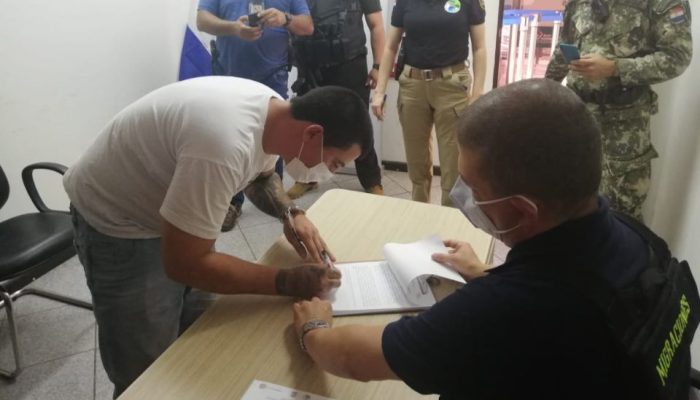 El extranjero fue puesto a disposición de la DGM para su expulsión y posterior entrega a las autoridades de la Policía Federal del Brasil, por parte de la Unidad XI del Ministerio Público – Región II de Alto Paraná, debido a que el mismo cuenta con mandato abierto de prisión en la ciudad brasilera de Santa Catarina, por el hecho punible de homicidio doloso, además de registrar antecedentes penales por hurto agravado y coacción a menores.
