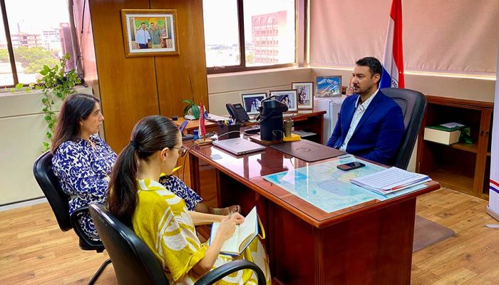 El director nacional de Migraciones, Jorge Kronawetter, recibió la visita oficial de la embajadora de España en Paraguay, Carmen Castiella, y de la encargada de Asuntos Consulares, Natalia Salas. Durante el encuentro abordaron diversos temas de interés mutuo y se exploraron oportunidades de cooperación en el ámbito migratorio entre ambos países.