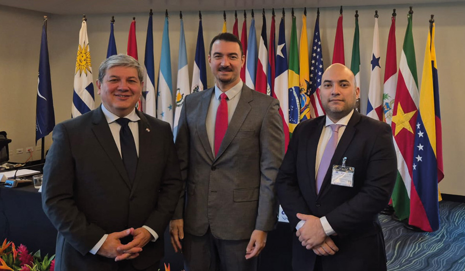 El director nacional de Migraciones, Jorge Kronawetter, participa en calidad de ponente, panelista y jefe de la delegación nacional, acompañado por el embajador del Paraguay en Costa Rica, Julio Duarte van Humbeck, y el director AAT, Gonzalo Fernández, Encargado de Asuntos Migratorios Internacionales de la Dirección de Política Consular del Ministerio de Relaciones Exteriores.
