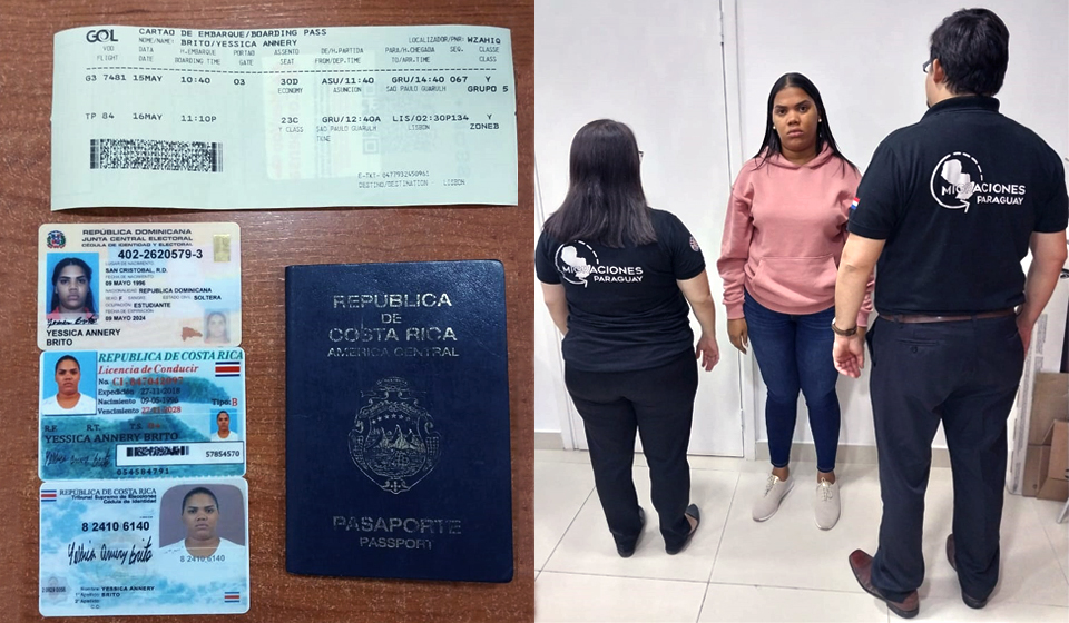 En la jornada del lunes, 15 de mayo del corriente, inspectores del puesto de control migratorio del Aeropuerto Internacional Silvio Pettirossi interceptaron a una pasajera que pretendía abordar un vuelo con destino a Lisboa (Portugal), portando un pasaporte costarricense adulterado. La ciudadana, quien se identificó como Yessica Annery Brito (presumiblemente de nacionalidad dominicana), […]