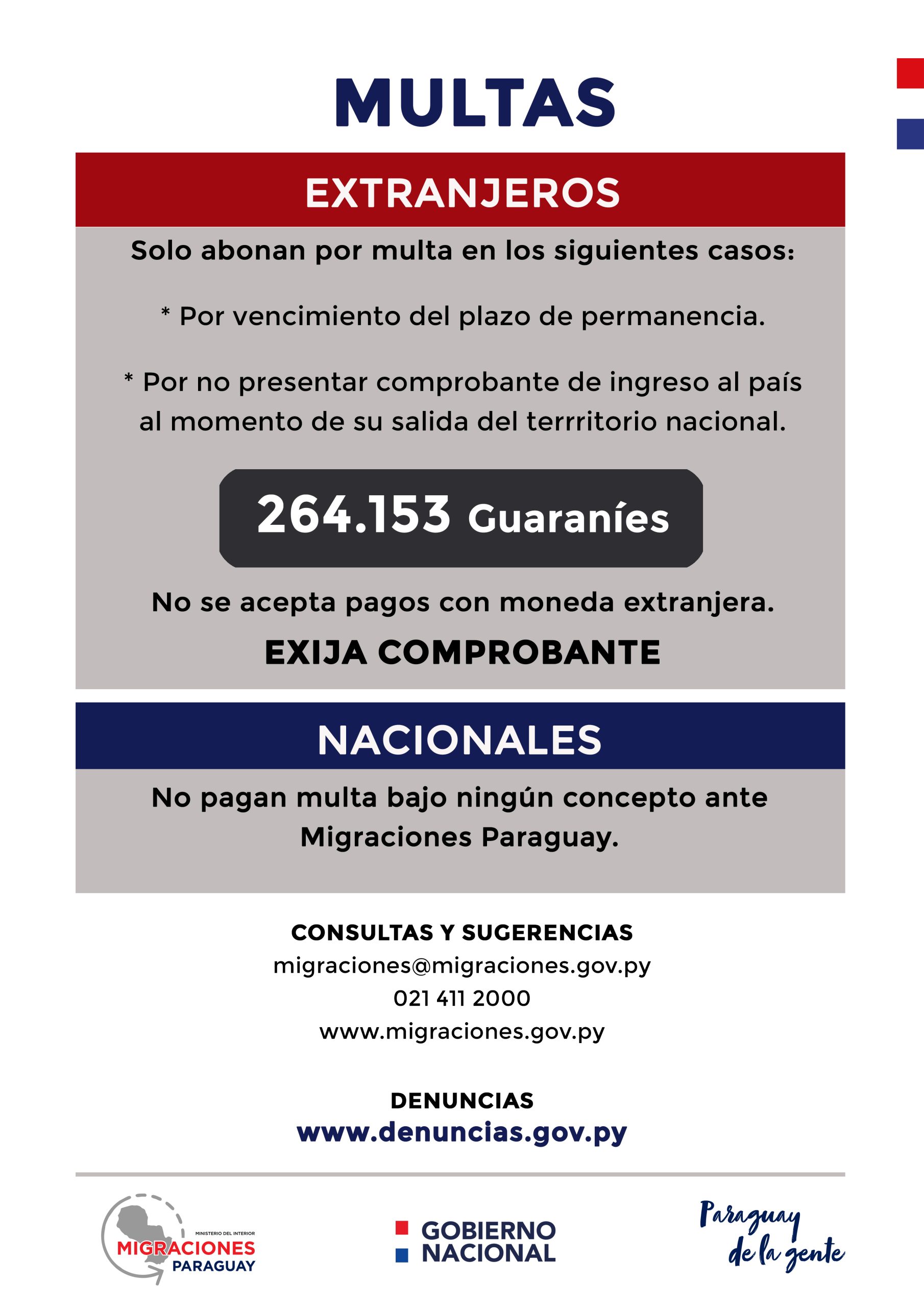 La Dirección General de Migraciones reitera a la ciudadanía cuáles son las infracciones a la Ley Migratoria N° 978/96 que ameritan una sanción bajo pena de multa, que será aplicada por la Institución a los ciudadanos extranjeros en Paraguay. Recordamos que los ciudadanos nacionales no podrán ser sancionados con multa por la Dirección General de […]