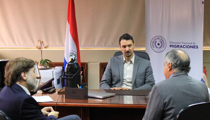 El titular de Migraciones Paraguay compartió con el Embajador los principales planes y propuestas destinados a mejorar la gestión migratoria durante su administración. Asimismo, destacó la necesidad de trabajar conjuntamente por una mayor facilitación en los pasos fronterizos con Argentina y enfatizó la importancia de coordinar esfuerzos bilaterales para promover la facilitación e integración fronteriza entre ambos países.