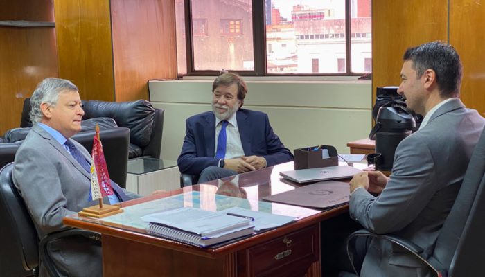 En la mañana de hoy, el Director Nacional de Migraciones, Jorge Kronawetter, recibió la visita oficial del Embajador de la República Argentina en Paraguay, Domingo Peppo, con quien conversó sobre temas de interés común relacionados al ámbito migratorio.